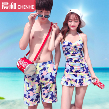 vicki情侣装泳衣 女带钢托小胸大胸聚拢迷彩裙式连体温泉沙滩海边