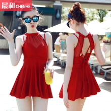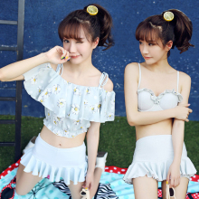 2017韩国分体泳衣女情侣裙式小胸钢托聚拢遮肚高腰少女泡温泉