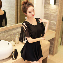 新款平角连体裙式游泳衣女士显瘦小胸聚拢钢托加大码保守温泉泳装