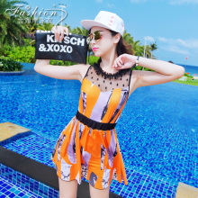 2017新款裙式连体游泳衣女保守平角显瘦遮肚小胸聚拢泳装泡温泉韩