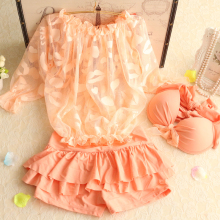 韩国可爱分体裙式泳衣小胸聚拢钢托双肩带荷叶边少女学生保守温泉