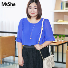 MsShe加肥加大码女装2017新款夏款胖MM200斤甜美轻薄雪纺衫11519