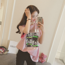 大码女装胖mm上衣2017春装新款百搭圆领胖妹妹宽松印花短袖T恤潮