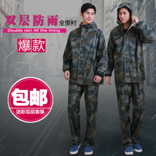 数码迷彩成人雨衣双层全里衬套装摩托车电动车加厚分体雨衣裤包邮