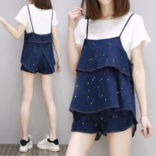 2017新款大码女装微胖mm夏装韩版宽松胖妹妹藏肉显瘦时尚两件套装