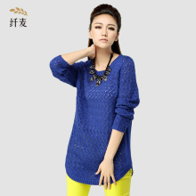 纤麦大码女装毛衣春秋胖mm宽松针织衫网衫镂空长袖毛衣罩衫女