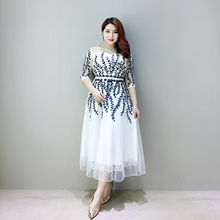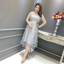 2017夏季大码女装网纱刺绣连衣裙收腰显瘦蓬蓬裙个性百搭胖mm4513