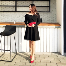 大码女装长袖连衣裙春装新款胖mm200斤韩版性感露肩打底裙子1661