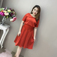 夏季大码女装文艺淑女蓬蓬裙时尚收腰显瘦a字裙加大连衣裙女4427