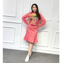 现货大码女装套装裙两件套2017春季胖mm修身收腰卫衣鱼尾裙1983