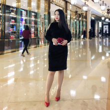 大码女装冬装新款胖mm200斤韩版修身性感露肩丝绒钉珠连衣裙1893