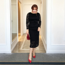 现货大码女装连衣裙中长款2017春修身显瘦胖mm蕾丝打底裙长裙1974