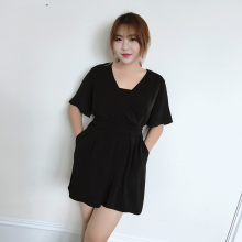 现货2017夏季新款大码连体裤胖mm宽松阔腿短裤黑色收腰连衣裤1274