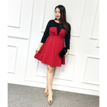 现货2017春季大码女装200斤胖mm收腰显瘦长袖V领撞色连衣裙1973