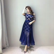 大码女装中长款网纱刺绣套装裙两件套一字领连衣裙+半身裙潮4404
