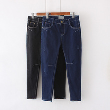 韩版新品2016显瘦纯色抓痕弹力胖妹妹白线小脚牛仔裤秋新品女装潮