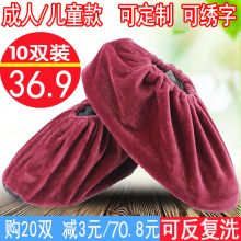绒布鞋套防滑底家用防尘脚套可反复洗加厚学生机房鞋套10双