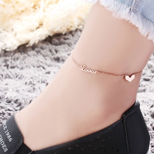 韩国时尚字母爱心脚链彩金玫瑰金钛钢饰品脚环女百搭创意生日礼物