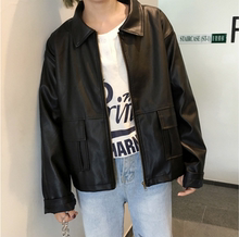 秋装新款帅气复古POLO翻领外套皮衣女 宽松休闲bf帅气短款夹克潮