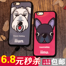 可爱雪纳瑞斗牛犬苹果iPhone6S 6手机壳6plus 硅胶潮牌女5S壳挂绳