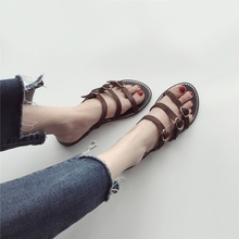 韩版~细皮带搭扣设计外出露趾马毛拖鞋 夏季百搭休闲平跟女鞋凉拖