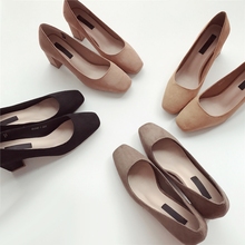 东大门同步款,简约方头四季绒面材质粗跟单鞋低帮鞋