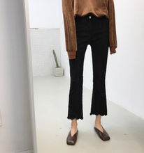 复古韩国chic风波浪边下摆显瘦高腰微喇叭黑色牛仔裤九分裤女裤
