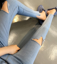 港味个性破洞牛仔乞丐裤女裤修身显瘦不规则割破小脚裤九分裤