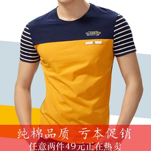 男夏装短袖t恤男圆领简约体血衫韩版修身条纹半袖青年休闲上衣服