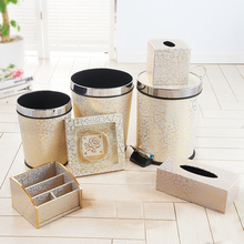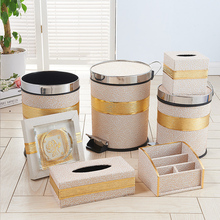 中跃小金爪皮革垃圾桶 欧式时尚创意收纳盒家用厨房垃圾筒垃圾篓
