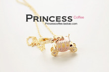 2013新款 出口甜美可爱精致粉色南瓜车项链吊坠/包链/钥匙扣