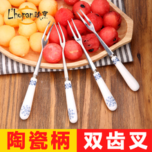 欧烹陶瓷水果叉子 不锈钢蛋糕叉 创意叉 甜品点心叉 水果签 套装