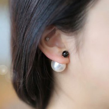 韩国时尚双面人造珍珠耳钉 气质前后大小夸张耳饰 女孩饰品 包邮