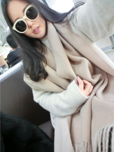 韩国东大门暖色系超大情侣纯色仿羊绒围巾披肩秋冬款加厚学生围脖