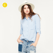 cachecache 撞色竖条纹大口袋学院风衬衫 4419004482