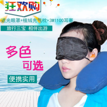 适美佳旅行三宝套装遮光睡眠眼罩植绒充气U型枕隔音耳塞便携套装