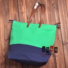 出口美国 拼接拼色撞色款 简约潮流手提 帆布包