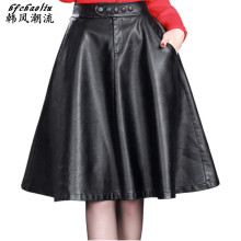 2017韩版新款大码修身显瘦春秋冬中长pu皮裙A字大摆短裙半身裙子