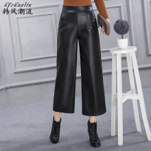 包邮2017秋冬皮裤显瘦阔腿裤九分裤女裤长裤裤秋冬休闲裤PU皮裤潮