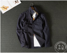 16款春季新款 原单外贸 男士修身纯棉亚麻水洗衬衣外贸衬衫上衣男