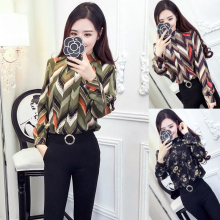 2017春装新款女装雪纺衫小衫印花半高领衬衫春夏长袖打底衫上衣
