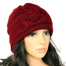 冬季韩版手工镶花毛线帽女士妈妈帽中老年人女双层保暖帽奶奶帽