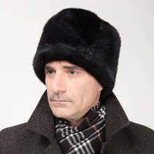 秋冬季加厚加绒中老年男士帽子保暖仿水貂毛皮草护耳鸭舌老人帽男