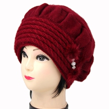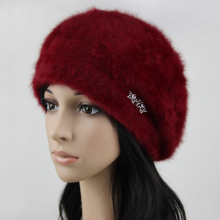秋冬天保暖兔毛帽子中老年帽子女式贝雷帽毛线帽针织帽妈妈帽护耳