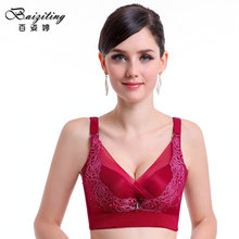 百姿婷新款女士内衣大码蕾丝薄款美背全罩杯睡眠聚拢调整型文胸