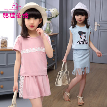 铭佳童话2017儿童中大童装夏装两件套小学生夏季女童短袖清仓套装