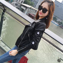 韩版秋冬新款黑色五角星刺绣pu皮短款机车皮衣女显瘦皮夹克外套潮