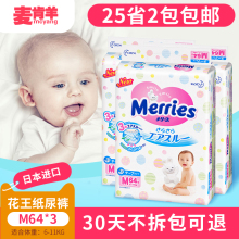 日本进口花王纸尿裤M64片*3包婴儿中号尿不湿三倍透气包