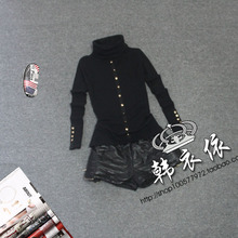 欧洲站2016秋冬新款前排扣高领打底衫百搭长袖小衫纯色棉女T恤潮