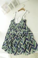 Manni。韩国新品 蓝绿色集合菱形~雪纺吊带裙+坎肩T恤两件套套装